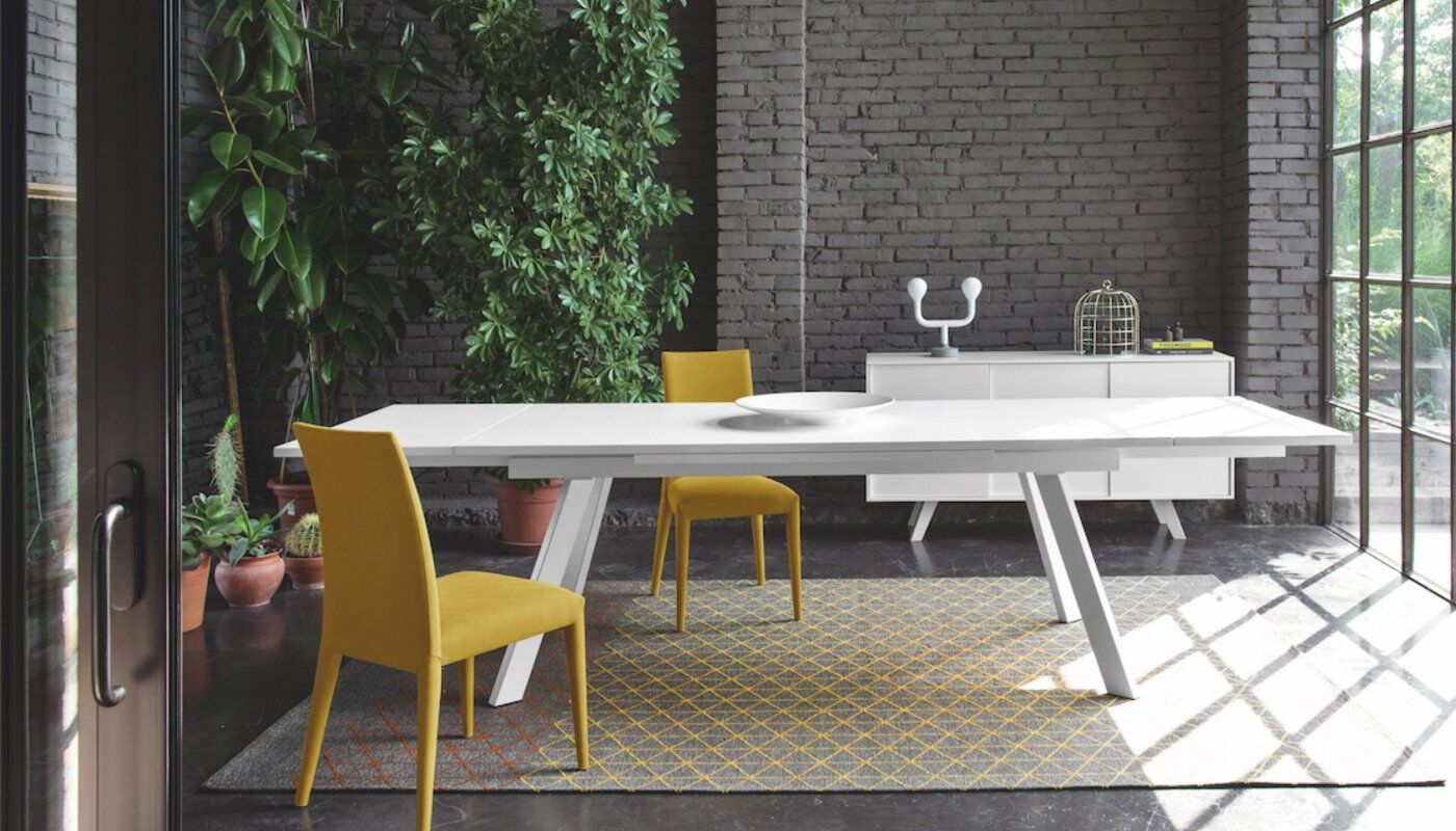 Blat ma krawędź z litego drewna na końcach i dwa skrzydła przedłużające, również drewniane, pasujące do blatu, z mechanizmem otwierania współpłaszczyznowego. Ponente jest idealny do dużych jadalni.
