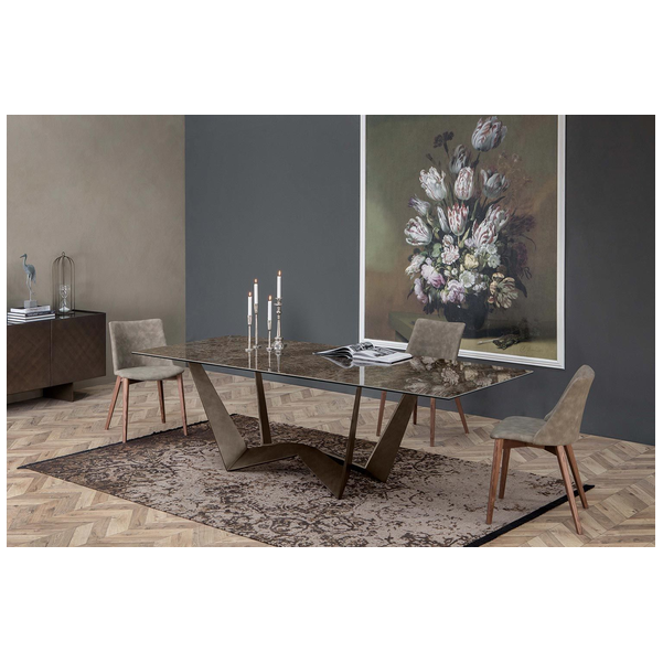 Reverse stół od Tonin Casa robi imponujące wrażenie w nowoczesnym pomieszczeniu. Rzeźbiarska podstawa w zabawny sposób wykorzystuje geometrię. Duża przestrzeń na górze zapewnia dużo miejsca do wspólnego jedzenia i wspólnego posiłku. Dzięki zastosowaniu najlepszej jakości materiałów stół Reverse będzie podstawą mebli na pokolenia. Wyprodukowany we Włoszech z niesamowitą dbałością o szczegóły, stół Reverse dobrze łączy się z różnymi krzesłami Tonin Casa. Dostępne w trzech rozmiarach z różnymi opcjami ze szkła i ceramiki na blat oraz z różnymi metalowymi wykończeniami podstawy.