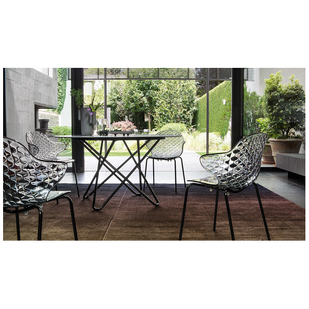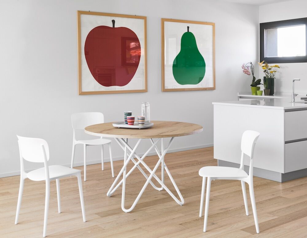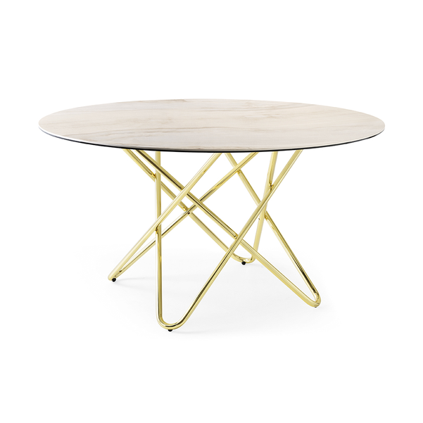 Pewnego dnia podczas zaćmienia narodził się Stellar ze swoim zaokrąglonym, nierozciągającym się projektem, aby oświetlić jadalnię czystą elegancją. Rama zawiera metalowe nogi, które przeplatają się jak naszkicowane linie grafika i przedstawiają kosmiczny wzór pełen powściągliwej elegancji, na którym spoczywają okrągłe blaty z drewna i białego lakieru. Wspaniała sylwetka, nowoczesny rdzeń i minimalistyczny design zapewniają idealną równowagę między lekkością a wytrzymałością.