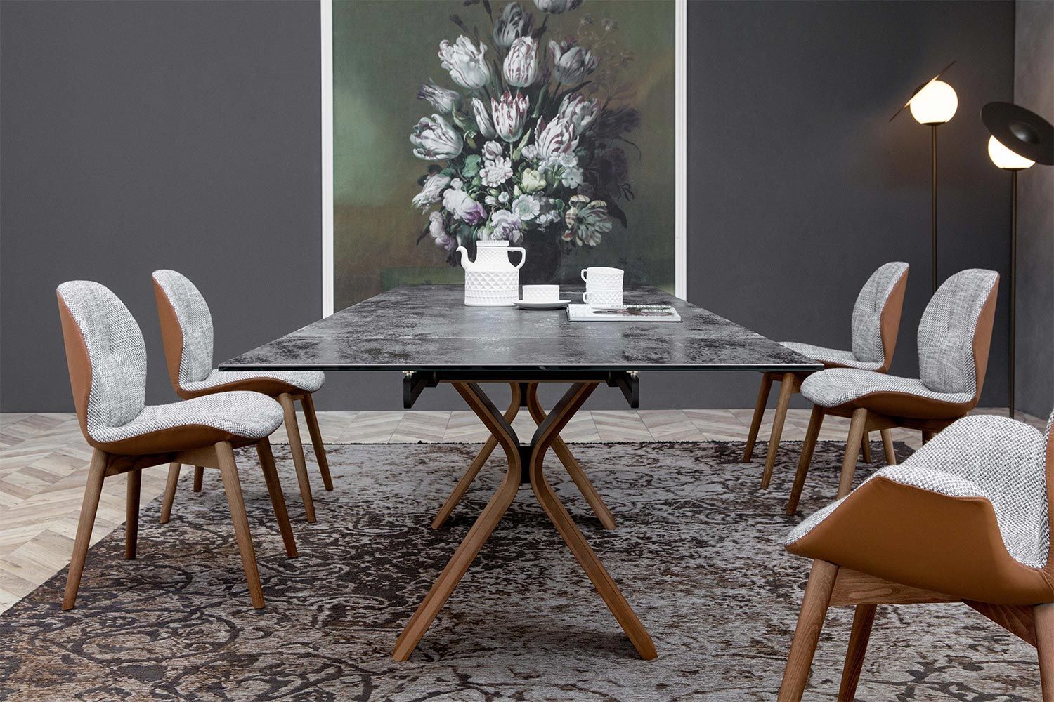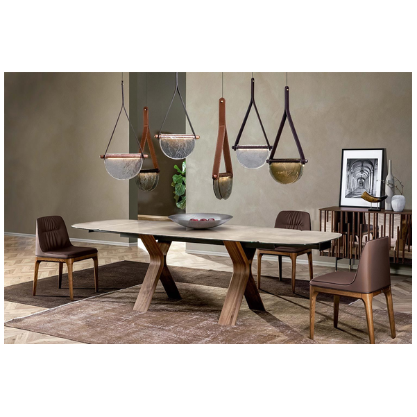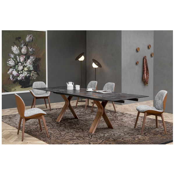 Ciesz się wszystkimi posiłkami przy uroczym stole Still firmy Tonin Casa. Wspaniała sylwetka wyróżnia się na tle pozostałych mebli w pokoju. Dzięki nogom w kształcie litery X ma ładną geometrię i zapewnia wsparcie. Aby zwiększyć atrakcyjność, dwustronne listwy rozkładane wysuwają się jednym płynnym ruchem, aby natychmiast stworzyć więcej miejsca, co jest idealne dla dużych rodzin. Zaprojektowany przez Angelo Tomaiuolo i wyprodukowany we Włoszech w celu zapewnienia jakości, stół jest dostępny w kilku rozmiarach. Blat jest dostępny w różnych wykończeniach ze szkła i ceramiki, metalowe szyny przedłużające są w różnych kolorach, a podstawa jest dostępna w szeregu opcji drewnianych.