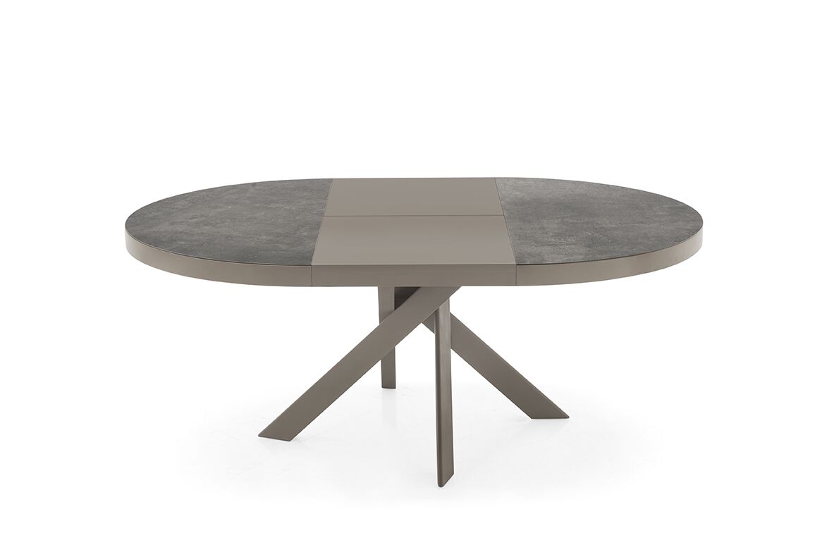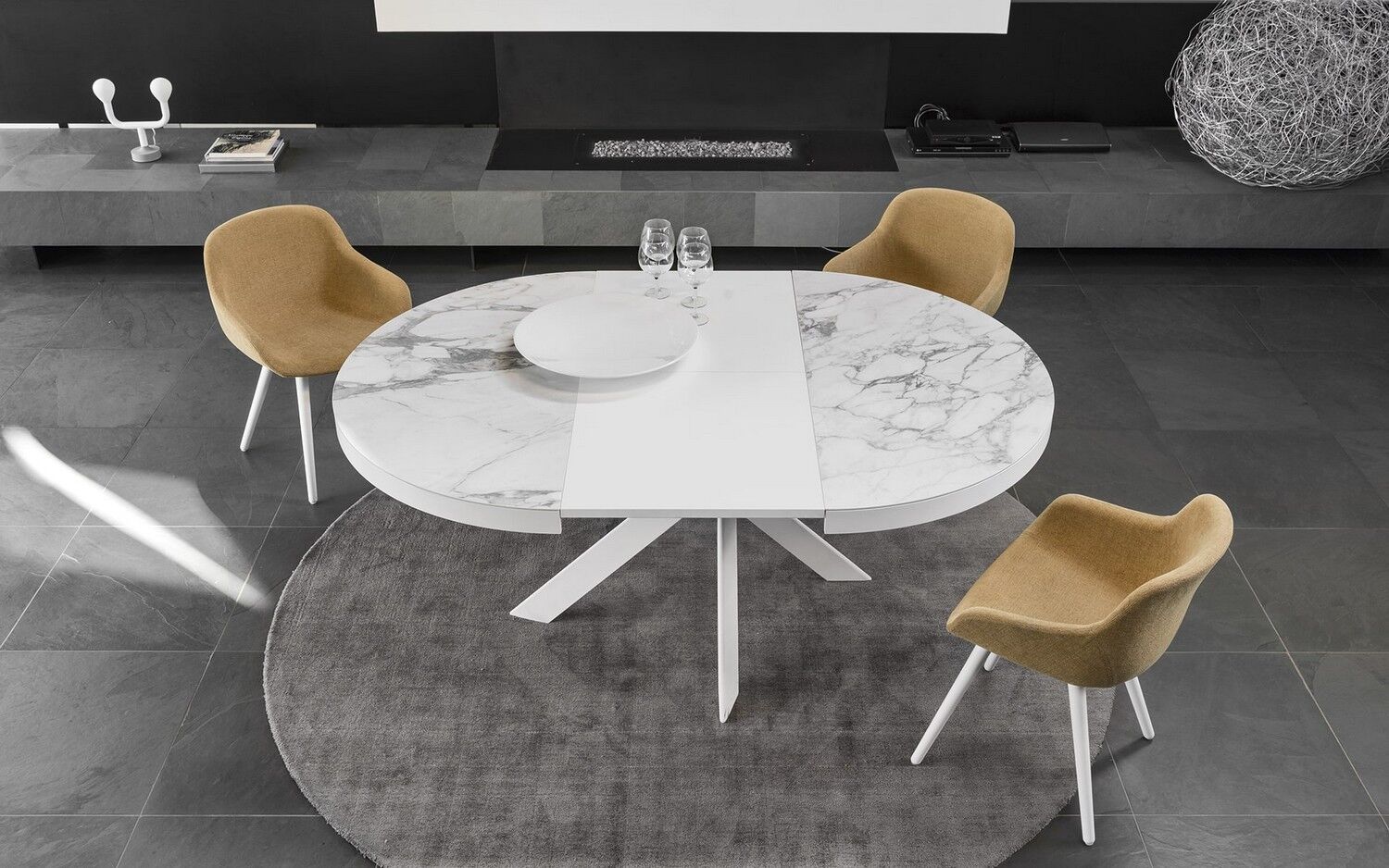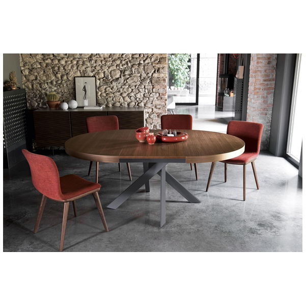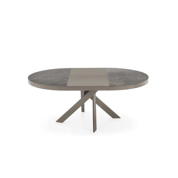 Tivoli to okrągły rozkładany stół z oryginalną metalową podstawą składającą się z 4 zazębiających się elementów w kształcie litery V, przypominający grę Shanghai. Solidny okrągły blat jest dostępny w wersji drewnianej lub ceramicznej i można go rozbudować dzięki centralnemu mechanizmowi otwierania motylkiem. Tivoli zajmie centralne miejsce w Twojej jadalni. Odkryj właściwe wykończenie dla Twojego ustawienia.