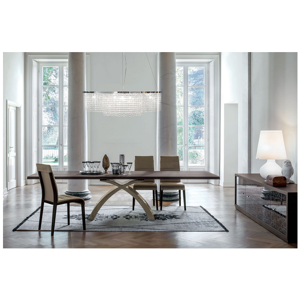Stół Tokyo marki Tonin Casa robi imponujące wrażenie we współczesnym pomieszczeniu. Rzeźbiona podstawa przyciąga wzrok, a krzyżujące się zakrzywione wsporniki dodają wyrafinowanego stylu, aby uczynić stół wyrazistym elementem. Dzięki dużej ilości miejsca na blacie wiele osób może usiąść przy stole i wygodnie zjeść. Różnorodne modne krzesła Tonin Casa pięknie wyglądają w połączeniu ze stołem, tworząc spójny wygląd. Zaprojektowany przez Gino Carollo i wyprodukowany we Włoszech wyłącznie z najlepszych materiałów, stół Tokyo to trwały mebel, który będzie trwał przez długi czas. Wybieraj spośród różnych wykończeń blatu, podczas gdy rama i podstawa mają różne wykończenia. Dostępne są dwa rozmiary dostosowane do indywidualnych potrzeb.