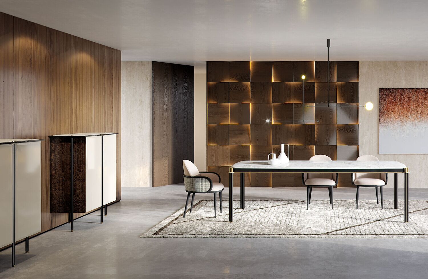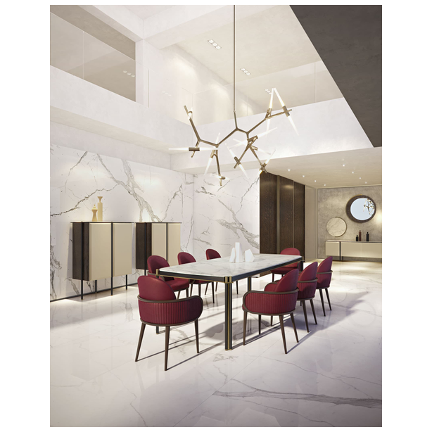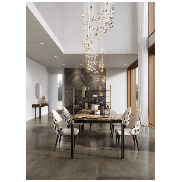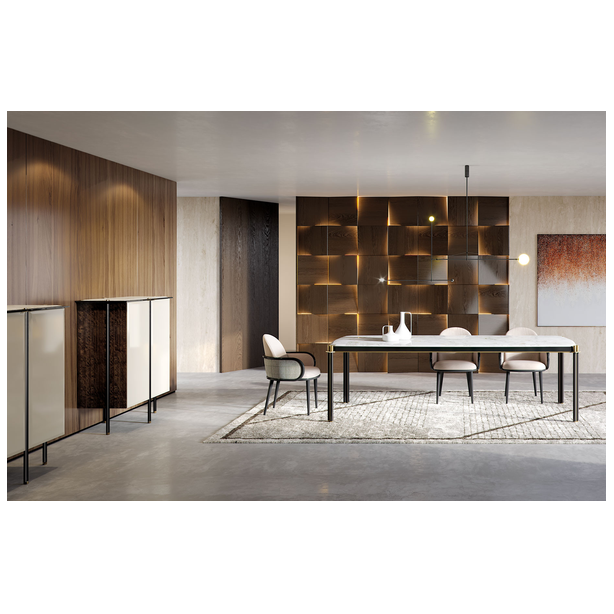 Tudor uzupełnia kolekcję Storage o dwa stoły do jadalni dostępne w różnych wykończeniach. Wszechstronność systemu znajduje się w różnorodności materiałów, od marmurowych detali, które nadają każdemu stołowi inny styl - bardziej klasyczny lub bardziej współczesny. Blat dostępny w drewnie lub marmurze. Nogi o okrągłym przekroju z połączeniem z metalowymi detalami.