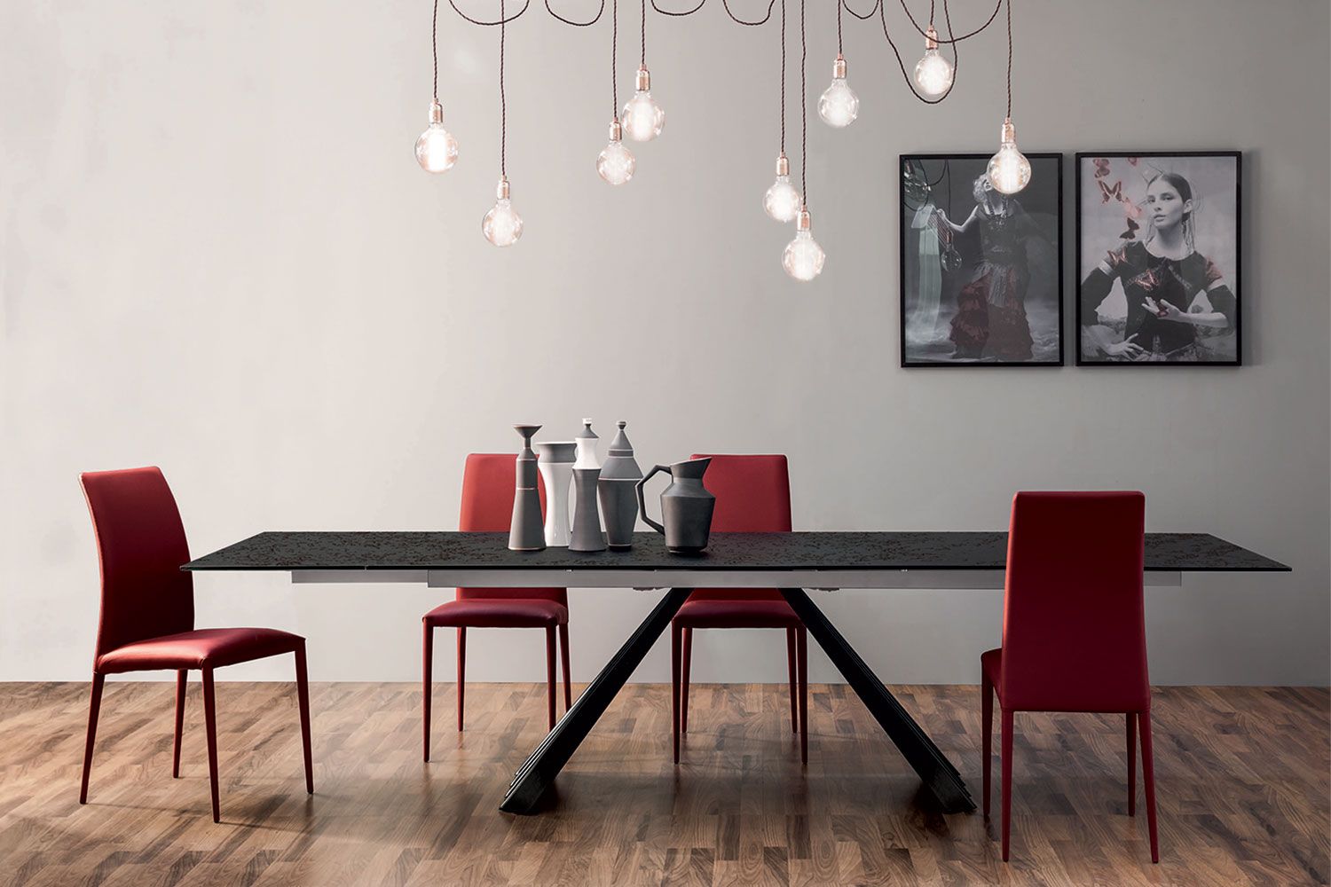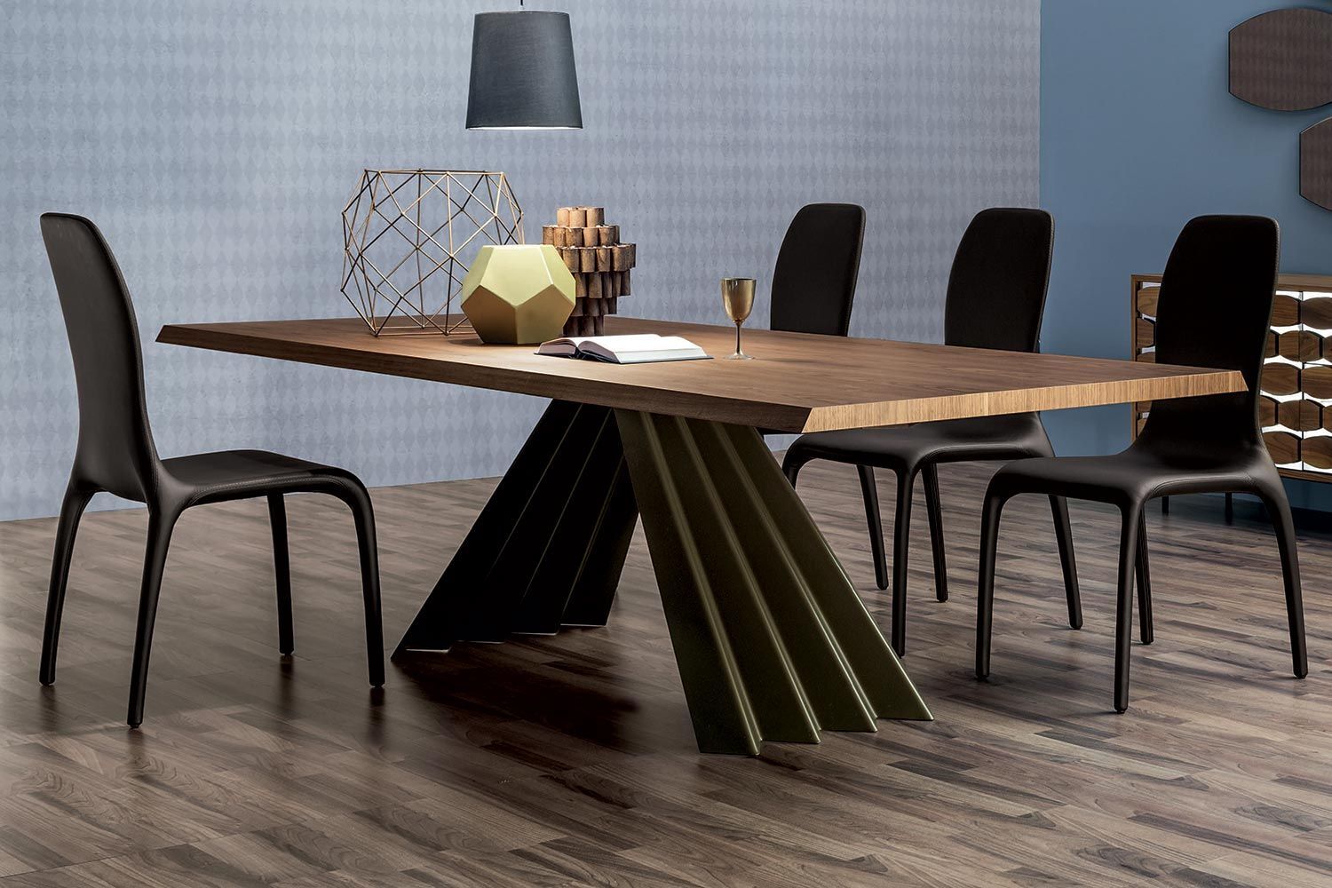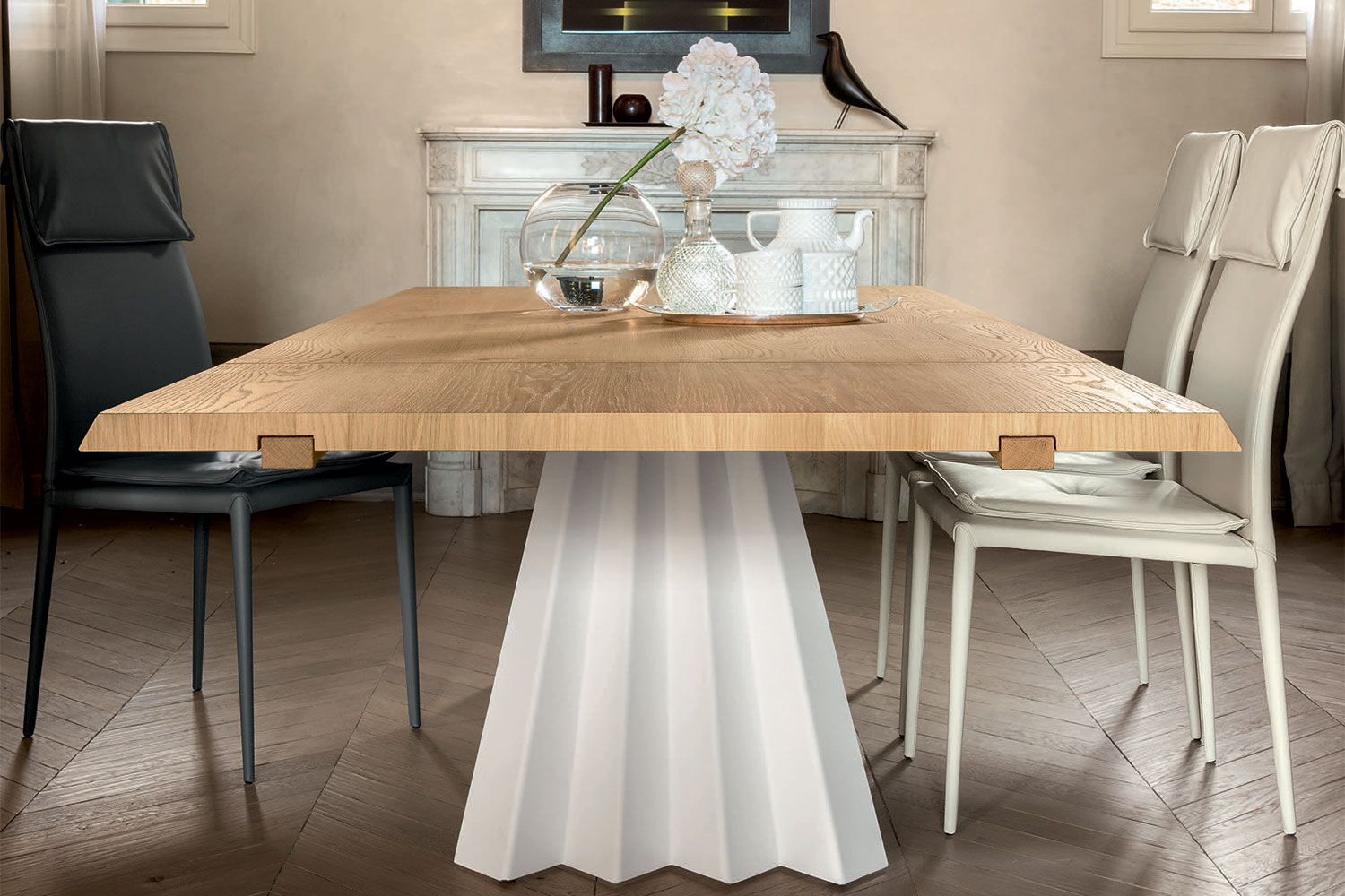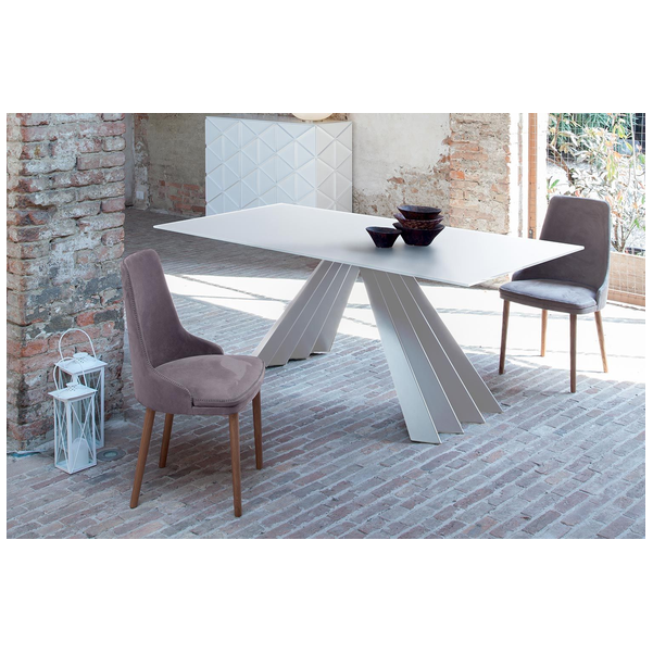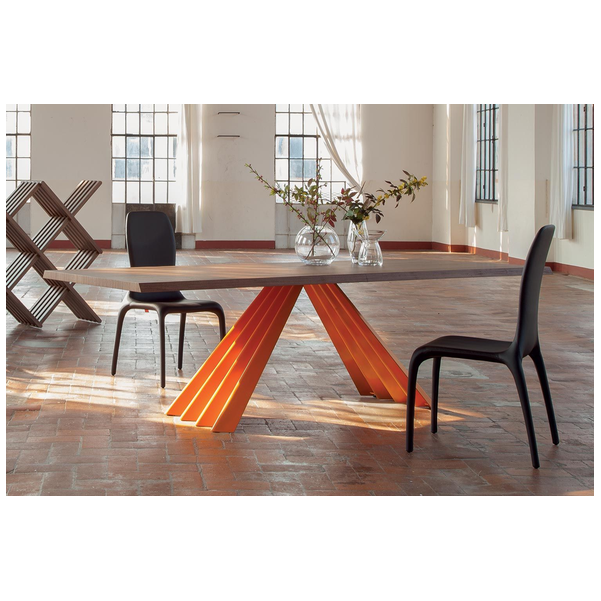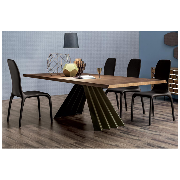 Dodaj odważny punkt centralny do swojej współczesnej przestrzeni za pomocą rzeźbiarskiego arcydzieła, stołu Ventaglio firmy Tonin Casa. Inspirowana geometrią podstawa ma ustawione pod kątem nogi, które rozchylają się i tworzą wielowymiarową trójkątną strukturę. Ta podstawa jest nie tylko estetyczna, ale także praktyczna, ponieważ zapewnia dodatkowe wsparcie dla przestronnego blatu. Połącz ten wielki stół z różnymi krzesłami do jadalni Tonin Casa, aby uzyskać spójny wygląd. Wyprodukowany we Włoszech i zaprojektowany przez Nicolę Tonin drewniany stół do jadalni Ventaglio jest dostępny w wielu rozmiarach. Blat jest dostępny w niezliczonych wersjach, a podstawa jest dostępna w różnych matowych i metalicznych wykończeniach.