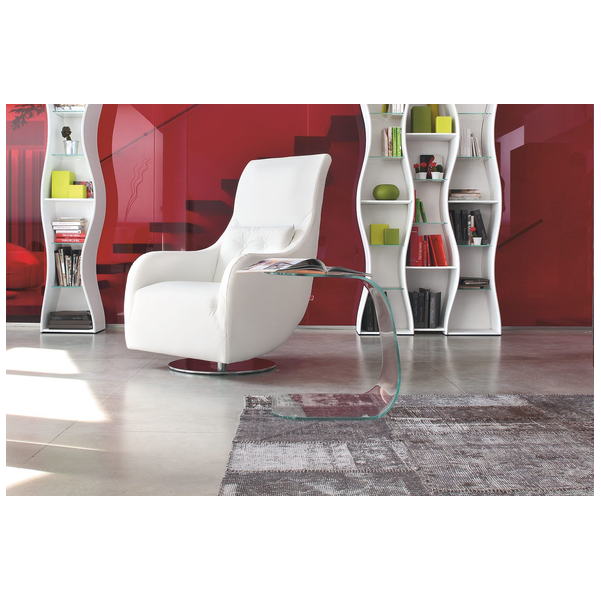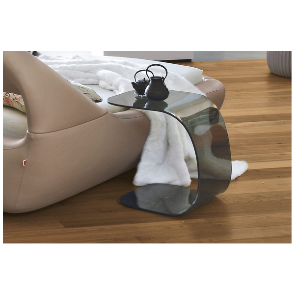 Stolik końcowy Beside to przydatny mebel do nowoczesnego salonu. Zakrzywiony kształt idealnie pasuje przy kanapie lub krześle, tworząc miejsce do pracy lub miejsce do jedzenia. Podstawa może również służyć jako praktyczna półka na materiały do czytania i inne drobne przedmioty. Chociaż konstrukcja całkowicie szklana wydaje się delikatna, jest trwała i wytrzymała oraz zaprojektowana tak, aby przetrwać lata. Wybierz pomiędzy konfiguracją lewą lub prawą i różnymi wykończeniami szkła.