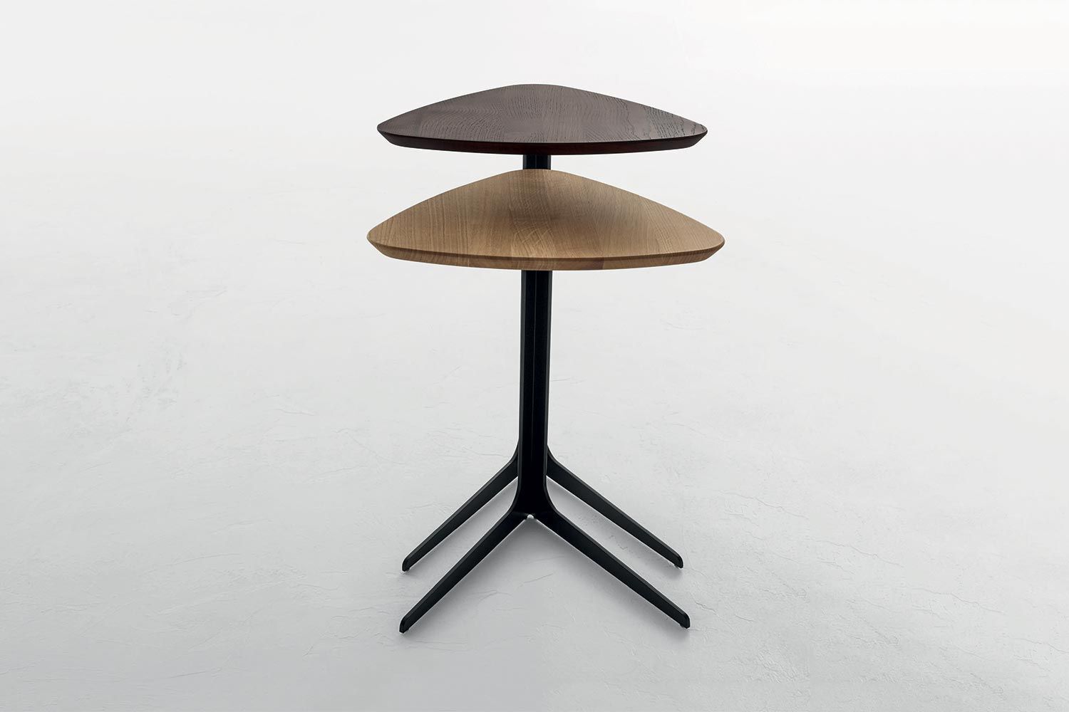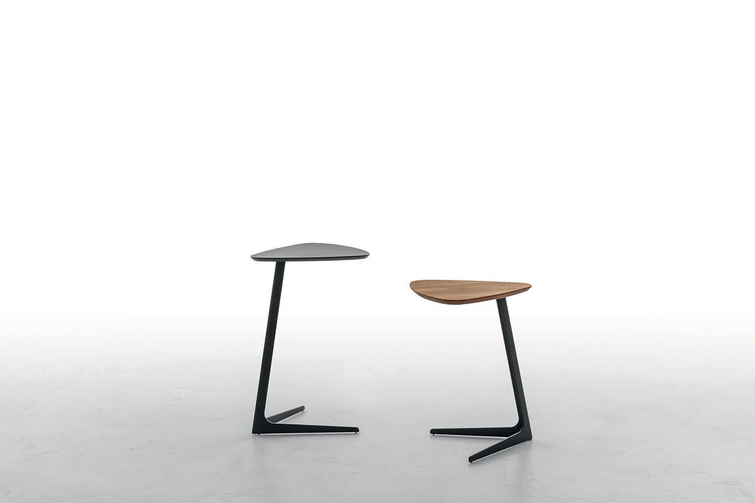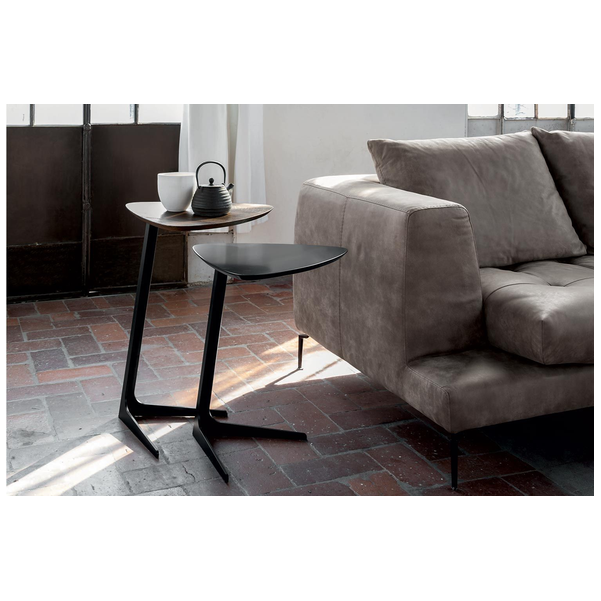 Minimalistyczny stolik kawowy Celine, inspirowany geometrią, to wygodny dodatek do nowoczesnego salonu. Kątowa podstawa może wsunąć się przy kanapie lub fotelu, aby stworzyć prowizoryczne miejsce do pracy lub miejsce do jedzenia. Dzięki trójkątnemu blatowi wyróżnia się stylem i doskonale komponuje się z resztą nowoczesnego wystroju. Wyprodukowany we Włoszech w celu zapewnienia jakości stolik końcowy Celine firmy Tonin Casa jest dostępny w dwóch różnych rozmiarach. Rama ma różne matowe wykończenia, a blat jest dostępny w różnych wersjach drewna.