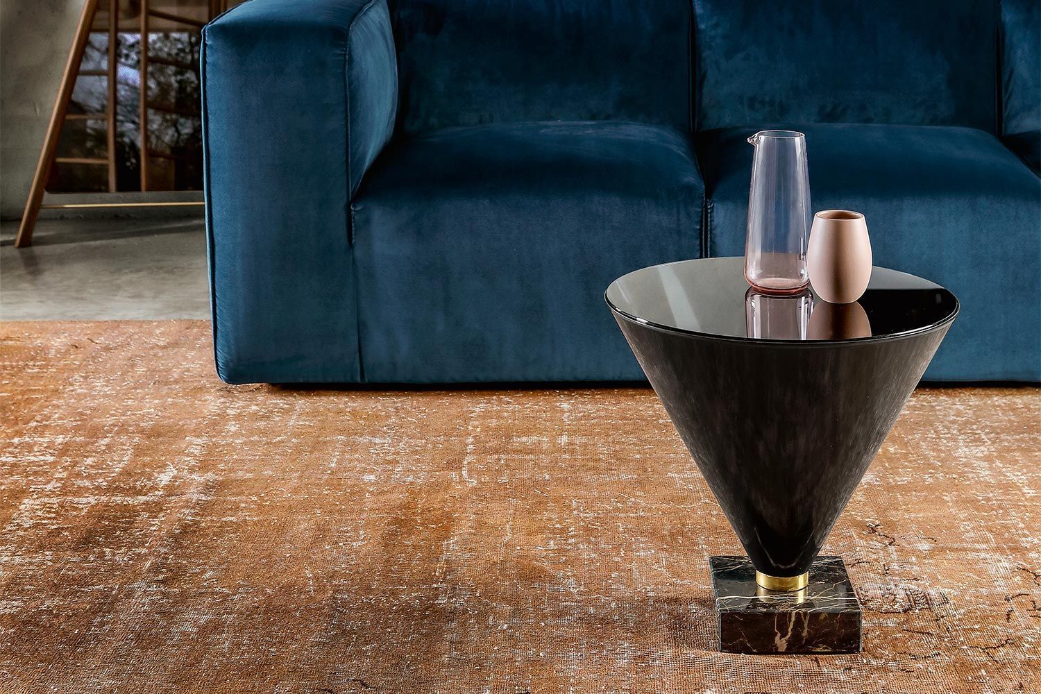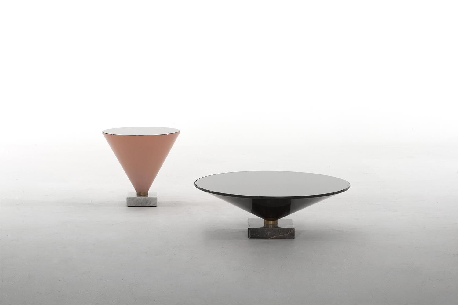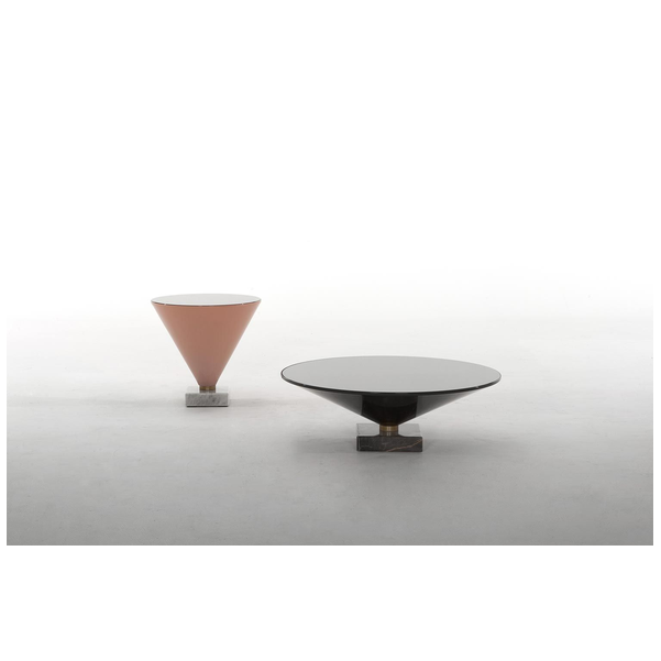 Stolik kawowy Flute to jedyna w swoim rodzaju propozycja do współczesnego salonu. Inspirowany geometrią stół ma trójkątny profil, który przechodzi od wąskiego do grubego, aby stworzyć dużo miejsca na górze, i pięknie balansuje na kwadratowej podstawie. Choć wygląda delikatnie, stół jest wykonany tylko z najlepszych materiałów i ma służyć przez długi czas. Kontrast między szklanym blatem, a marmurowymi bokami stanowi element dopełniający. Blat jest wykonany z wędzonego szkła, a rama jest dostępna w różnych opcjach marmuru, a akcent pierścienia jest w kolorze złotym.