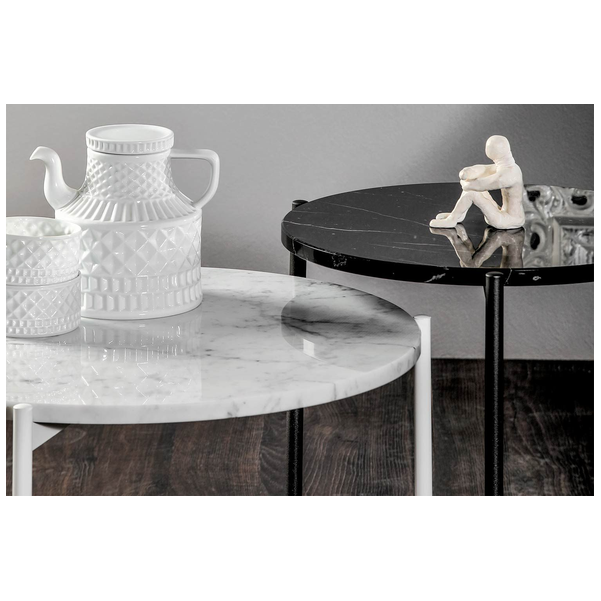 Błyskawicznie podnieś styl pomieszczenia za pomocą wspaniałego stolika kawowego Icon. Idealny do nowoczesnego salonu, stół ma przyjazną postawę dzięki minimalistycznemu wzornictwu i okrągłej sylwetce. Stolik kawowy z trzema cienkimi nogami wygląda krucho, ale jest wykonany z najlepszej jakości materiałów, dzięki czemu jest mocny i wytrzymały na lata. Na górze jest dużo miejsca na napoje, przekąski, piloty i inne przedmioty. Wyprodukowany we Włoszech z niesamowitą dbałością o szczegóły, stolik kawowy Icon marki Tonin Casa ma dopasowany stolik końcowy, który zwiększa atrakcyjność. Dostępne są dwa rozmiary i różne wykończenia marmuru z blatem, a podstawa jest dostępna w różnych metalowych opcjach.