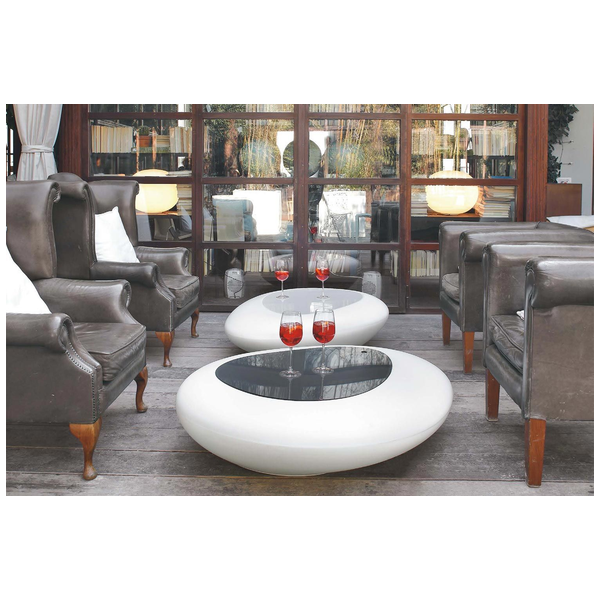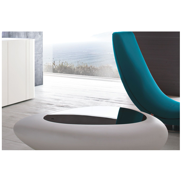 Zainspirowany naturą stolik kawowy Kos ze światłem lub bez, przypomina kamień i stanowi wyraz w nowoczesnym salonie. Plastikowa rama podświetla się, dzięki czemu jest to nie tylko efektowny stół, ale także imponująca oprawa oświetleniowa. Dzięki dużej ilości miejsca na rzeczy, blat można zdjąć, aby odsłonić ukryty schowek, który utrzymuje rzeczy poza zasięgiem wzroku i porządkuje. Okrągły i zachęcający stolik kawowy stanowi piękny punkt centralny i jest wykonany tylko z najlepszych materiałów. Rama jest dostępna w kolorze White Opuline, a na górze dostępny jest szereg opcji z pleksi i drewna.