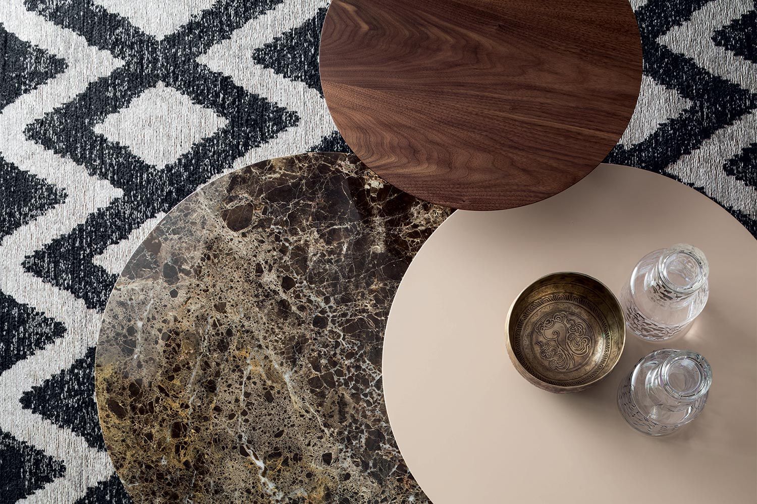 Stolik kawowy Log stanowi piękny centralny punkt w nowoczesnym salonie. Trzy blaty są na różnych wysokościach i rozmiarach, tworząc przyciągającą wzrok sylwetkę. Każdy blat ma indywidualne kolory, które stykają się ze sobą, tworząc żywe zestawienie. Dzięki dużej ilości miejsca na blatach jest dużo miejsca na napoje, przekąski, piloty i elementy wystroju domu. Mocne i solidne metalowe nogi z łatwością podtrzymują stół. Blat, metalowe nogi mają wiele opcji wykończenia.