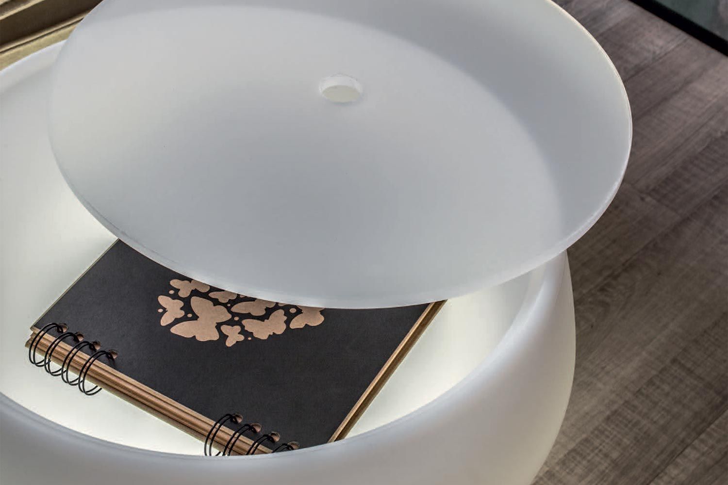 Błyskawicznie podnieś styl nowoczesnego salonu, dzięki geometrycznie inspirowanemu lekkiemu stolikowi Maki. Stół ma podwójną osobowość jako funkcjonalny stolik boczny i jasne światło, które pięknie oświetla przestrzeń. Przypominający figurę szachową stolik końcowy dodaje efektownego stylu, dzięki czemu jest to świetny kawałek do rozmowy. Aby zwiększyć atrakcyjność, górna część porusza się, odsłaniając ukrytą komorę, idealną do przechowywania małych przedmiotów. Lekki, trwały stolik Maki został zaprojektowany z myślą o zrównoważonym rozwoju, aby uczynić go wysokiej jakości meblem. Blat jest dostępny w wersjach z pleksi i drewna, a podświetlana podstawa jest wykończona w kolorze White Opuline.
