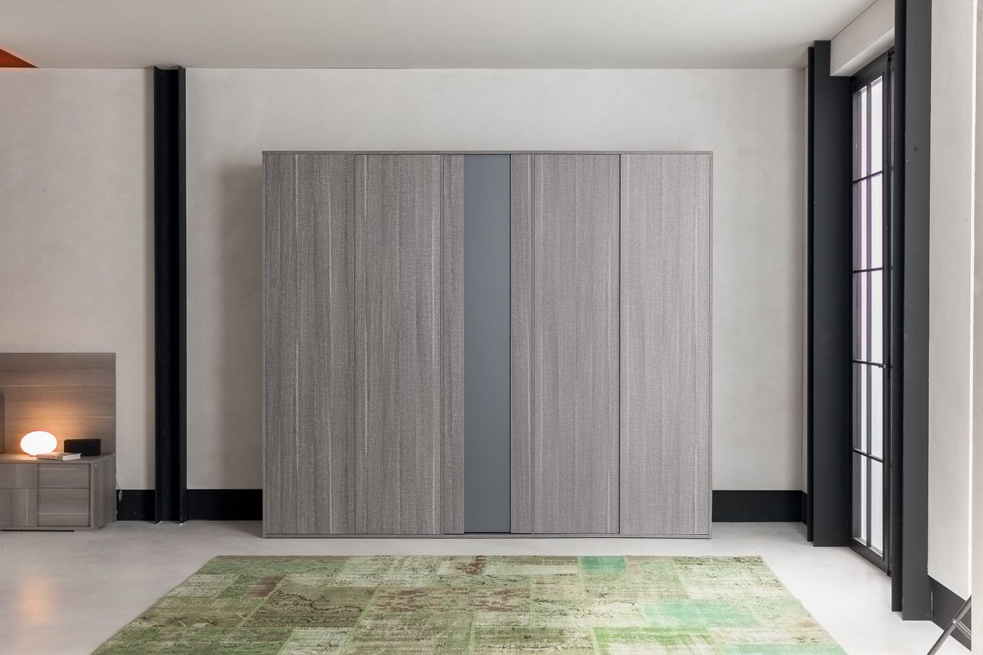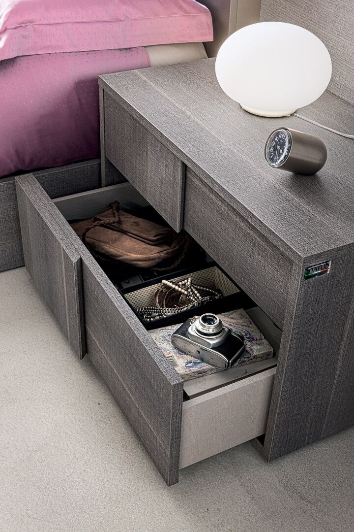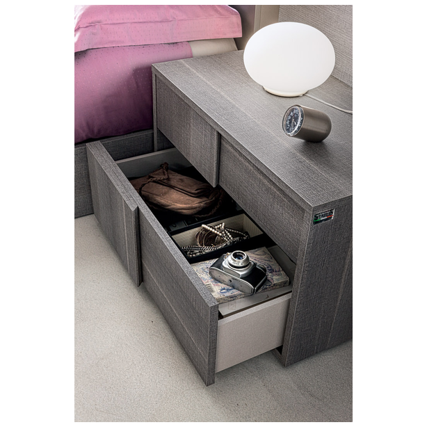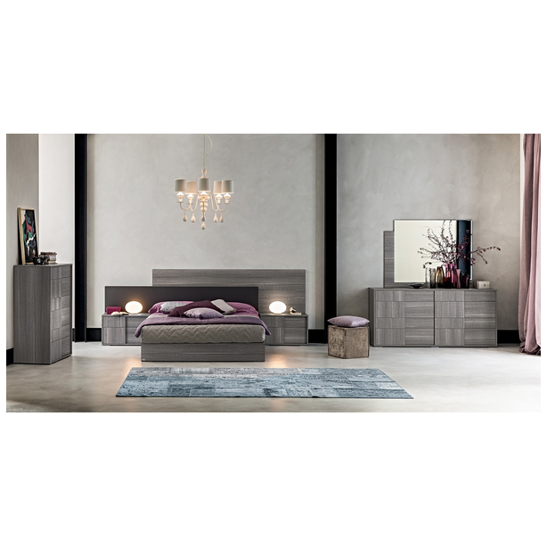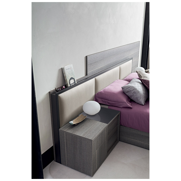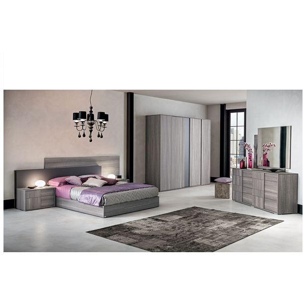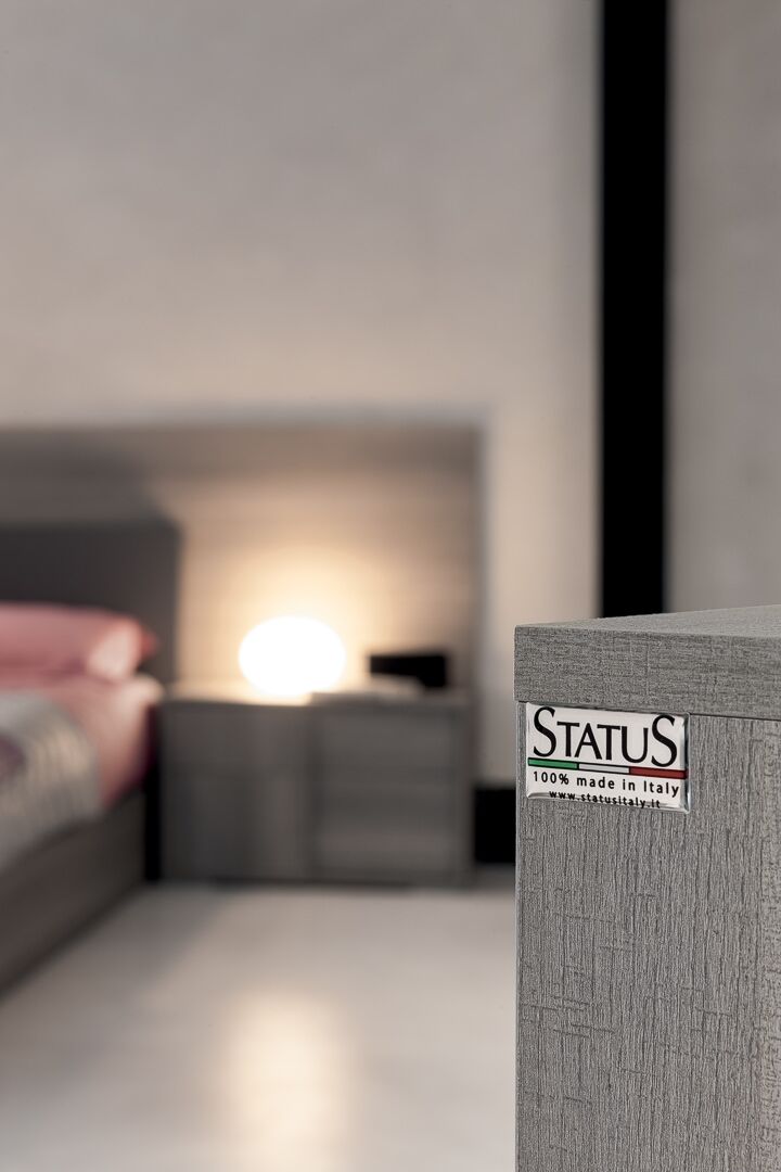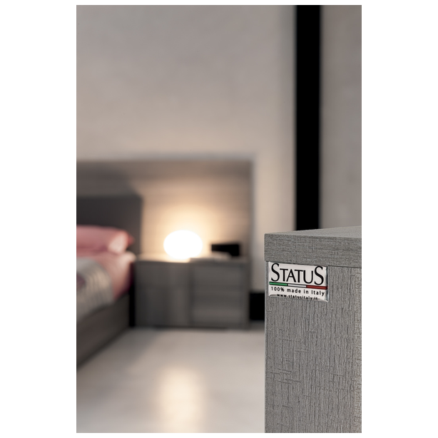 Nowoczesna sypialnia Futura o eleganckim designie to niewidzialna granica między tradycją i nowoczesnością. Jakość materiałów, certyfikaty produktów, kontrola produkcji, doskonałe wyposażenie, doskonałe właściwości użytkowe, to wszystko to meble Status 100% Made in Italy. Kolekcja zawiera niezbędny zestaw mebli do wygodnej organizacji przestrzeni i jej zagospodarowania przestrzennego. Do zestawu wybrano laminat z matowego szarego dębu o powierzchni odpornej na zarysowania. Połączone wezgłowie łóżka, a także oryginalnie zaprojektowane fronty mebli „nad głową” podkreślają ich indywidualność.