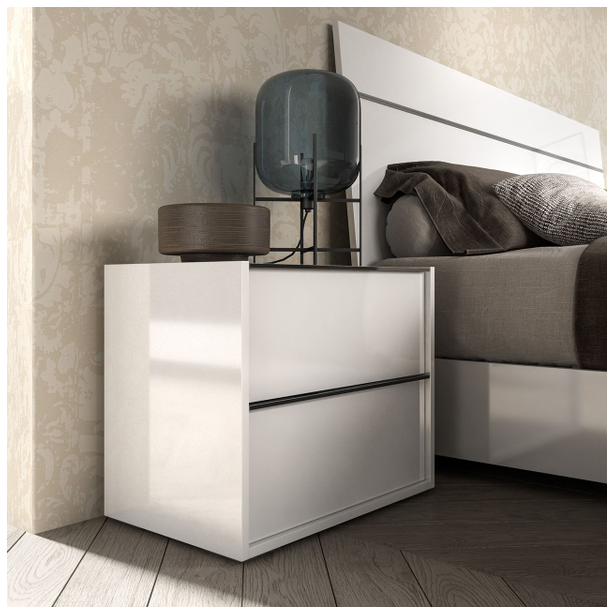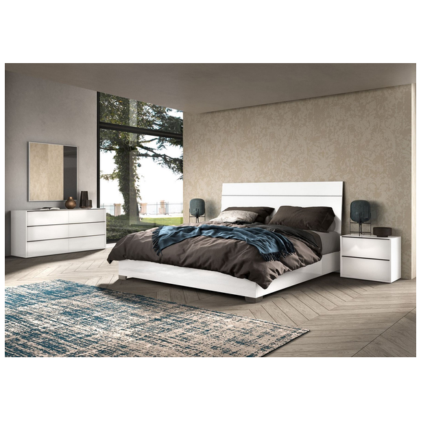 Luna to nowoczesna i funkcjonalna sypialnia, która nadaje przestronności otaczającemu środowisku, wzmocniona polerowanymi chromowanymi akcentami.