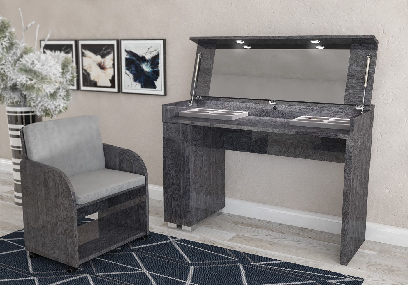 Sypialnia Sarah to zestaw stworzony przez pryzmat innowacji i tradycji w branży meblarskiej. W kolekcji znajdują się wszystkie niezbędne meble do wygodnej i harmonijnej aranżacji przestrzeni. W produkcji mebli stosuje się materiał w kolorze szarej brzozy, prezentowany w błyszczącej powłoce lakierniczej, której nakładanie odbywa się w kilku etapach. Blask powierzchni mebli doskonale łączy się z pięknem polerowanych chromowanych elementów, zakrzywionych uchwytów, z wbudowanymi szkłami i oświetleniem LED, luster. Meble tapicerowane oraz zagłówek tapicerowane są ekoskórą w kolorze beżowym z przeszyciami i mikrofibrą.