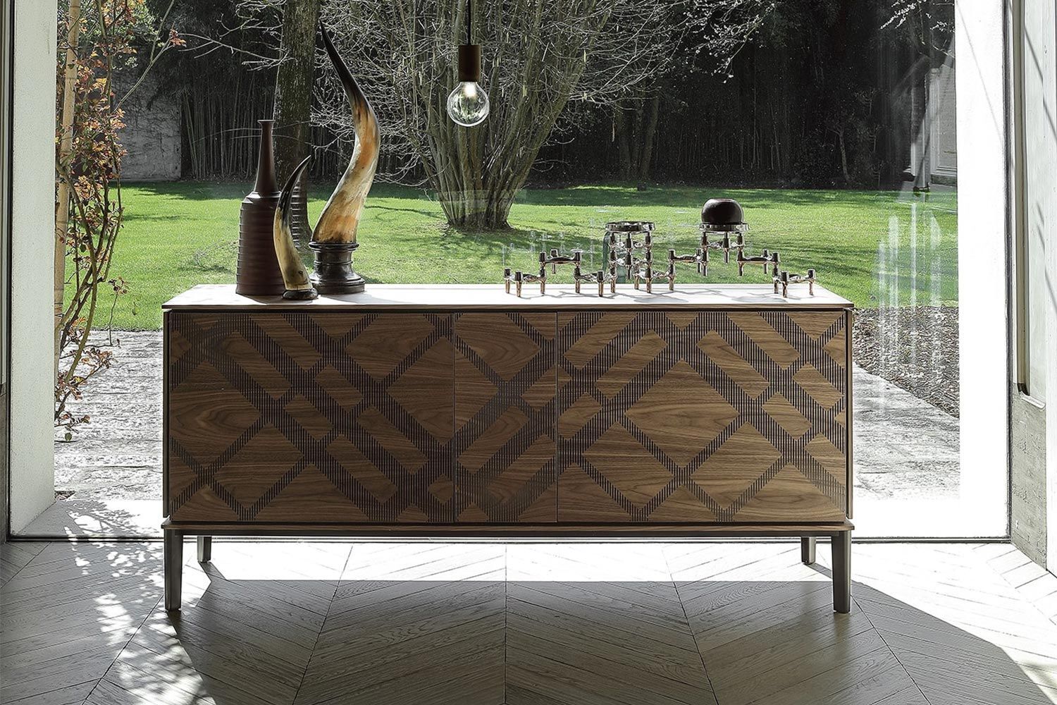 Komoda Tartan w szkocką kratę Tonin Casa dodaje szyku nowoczesnemu domowi. Inspirowane geometrią linie na strukturze przecinają się, tworząc przyciągający wzrok wzór w stylu argyle. Ten wysokiej jakości mebel to produkt obowiązkowy, znajdujące się w środku półki ułatwiają organizację, obszerny blat zapewnia niezliczone możliwości ekspozycyjne.