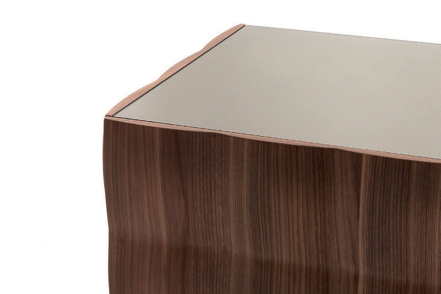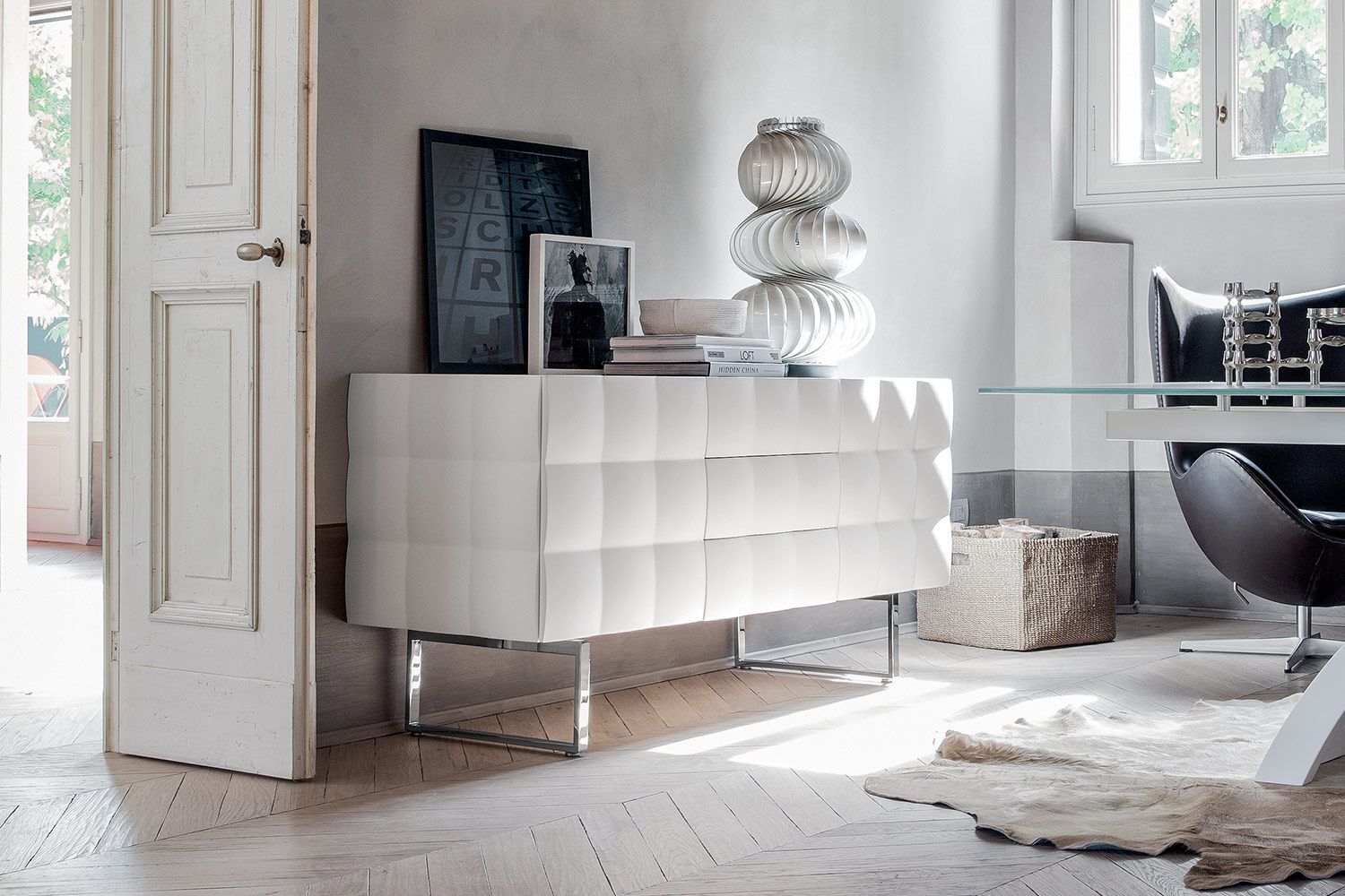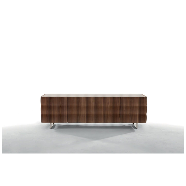 Komoda Venice jest częścią kolekcji jadalnej Venice od Tonin Casa i stanowi wyraz nowoczesnego salonu. Ma ten sam wzór w kratkę z wykończeniem z drewna orzechowego. Stojący na chromowanych metalowych nogach przyciągający wzrok Venice jest dostępny w kilku wersjach, które zaspokoją Twoje specyficzne wymagania dotyczące przestrzeni i przechowywania.